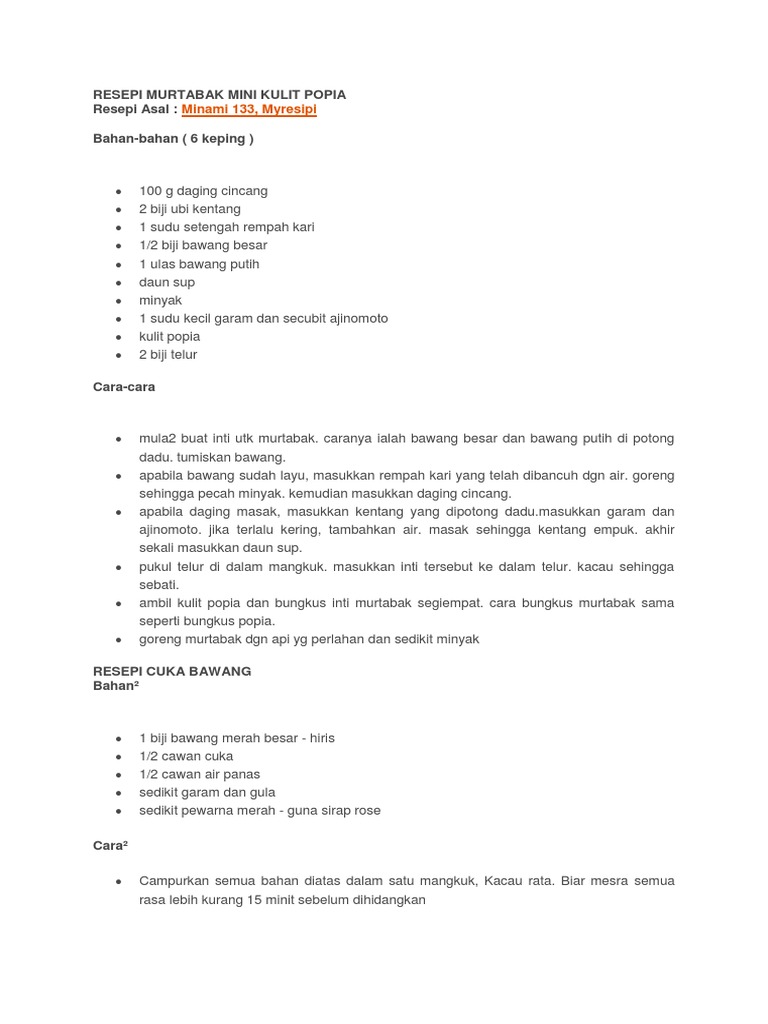 Resepi Murtabak Mini Kulit Popia
