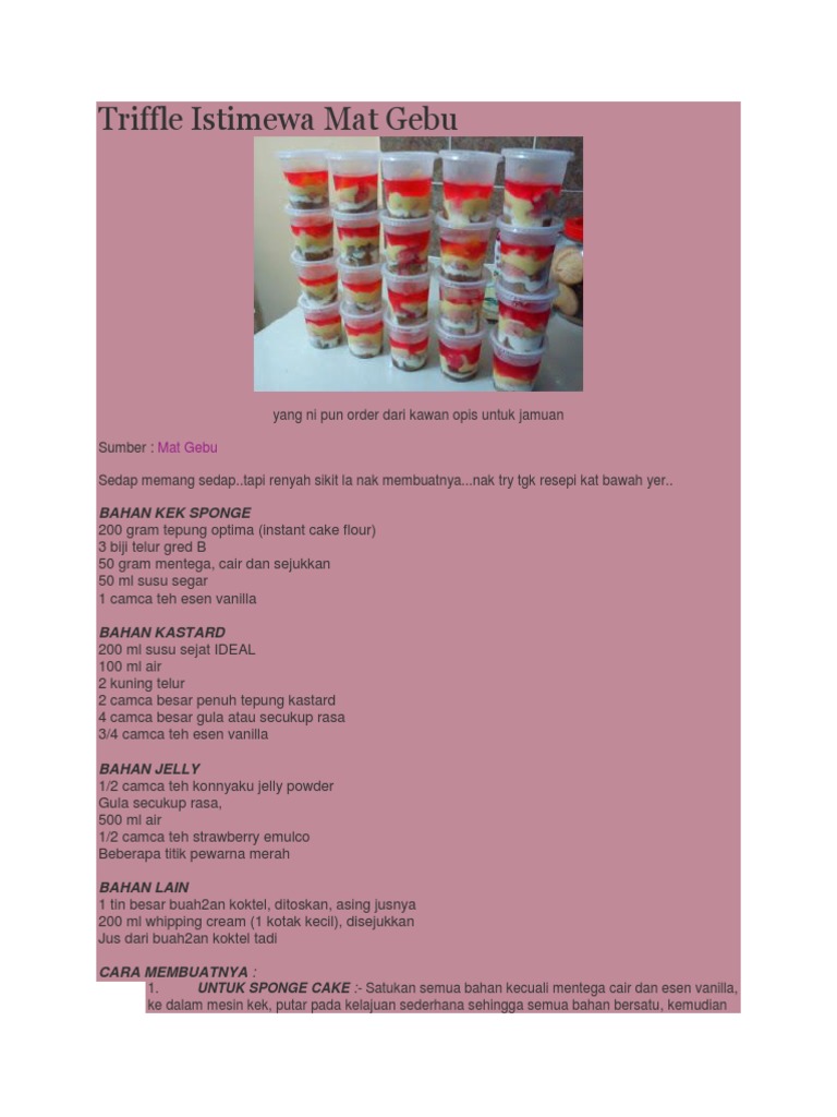 Resepi Puding Trifle Mat Gebu