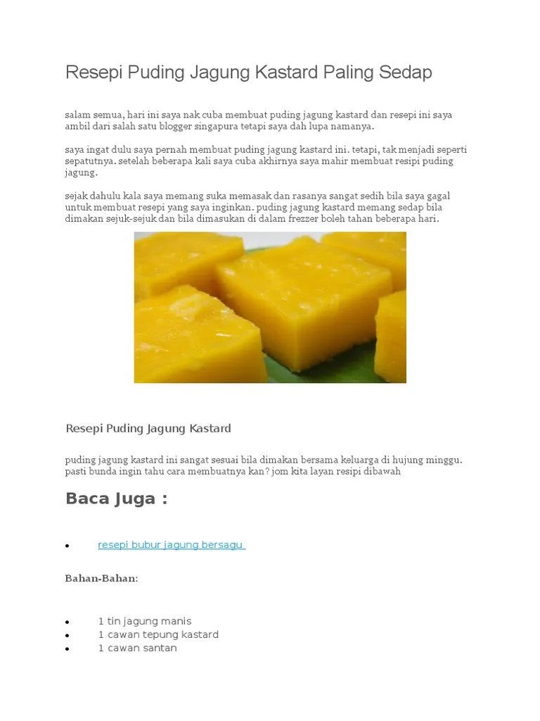 Resepi Puding Jagung Kastard Paling Sedap Blogopsi